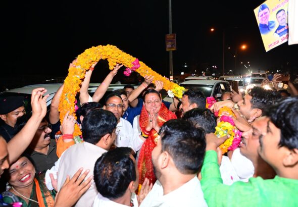 बुलडोजर से भी हुआ भव्य स्वागत, सड़कों पर उमड़ा जनसैलाब!काशीपुर से सड़क मार्ग से खटीमा पहुंचे सीएम...