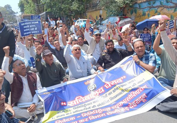 संयुक्त कर्मचारी घटकों के बैनर तले राज्य कर कर्मचारी महासंघ का उग्र प्रदर्शन, किया देहरादून में सचिवालय...
