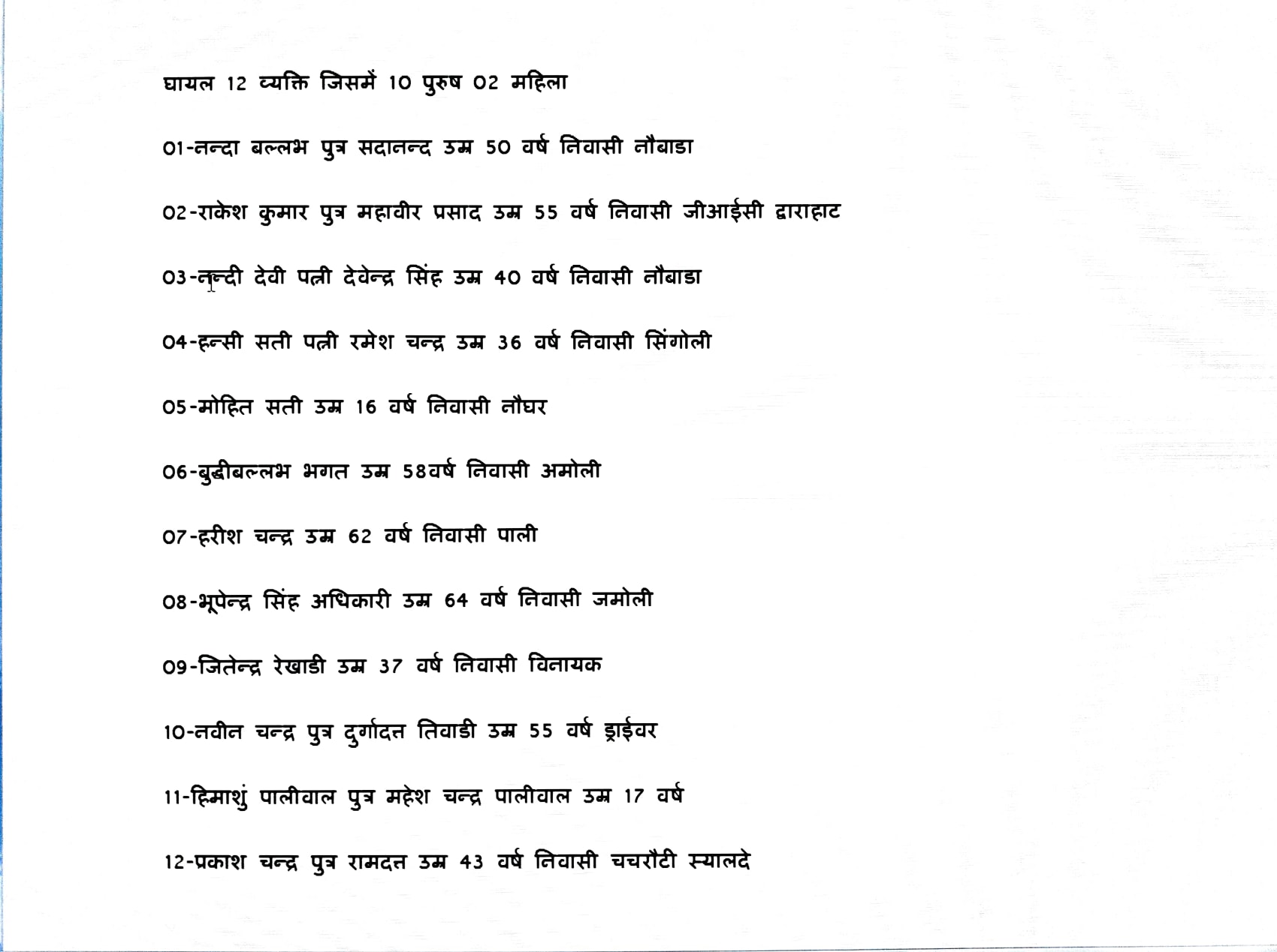 मुख्यमंत्री धामी ने जिला प्रशासन को निर्देश दिए कि हादसे में घायल सभी यात्रियों को तत्काल और बेहतर चिकित्सा सुविधा उपलब्ध कराई जाए।