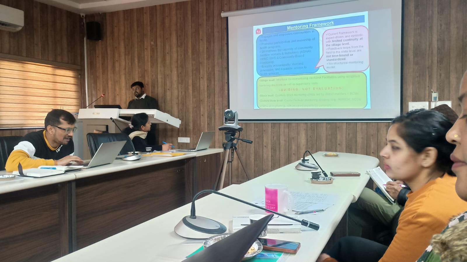 बैठक में इस बात पर भी सहमति बनी कि ASHA कार्यकर्ताओं की ऑन-साइट मेंटरिंग को मजबूत करने हेतु एक व्यवस्थित एवं संरचित मेंटरिंग ढांचे का विकास किया जाए। इसके अंतर्गत तकनीकी मानकों का निर्धारण, जिला, ब्लॉक एवं फील्ड स्तर पर बेहतर समन्वय, सतत निगरानी एवं प्रभावी फीडबैक तंत्र की स्थापना पर विशेष जोर दिया गया।