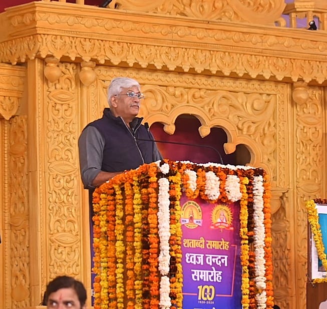 उन्होंने जनसमूह से आत्मपरिवर्तन को ही सामाजिक परिवर्तन की प्रथम शर्त बताते हुए कहा कि जब व्यक्ति स्वयं बदलने का साहस करता है, तभी राष्ट्र और समाज के नवनिर्माण की नींव सशक्त होती है। शताब्दी समारोह का उद्देश्य भी इसी चेतना को जाग्रत करना है, ताकि विचार, आचरण और कर्म के स्तर पर सकारात्मक बदलाव संभव हो सके।