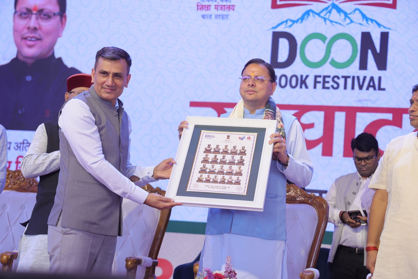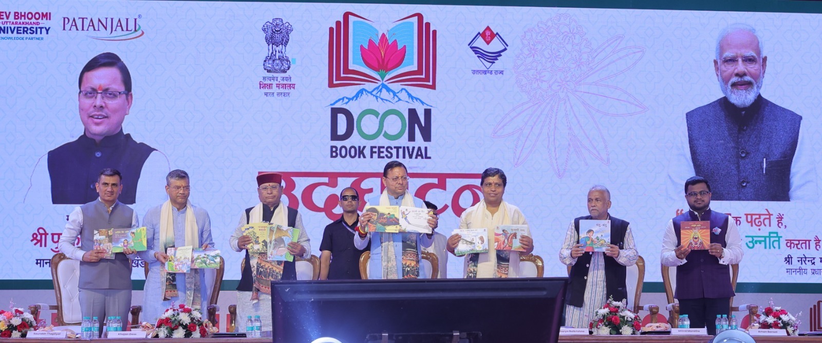 देहरादून, ब्यूरो। राजधानी के ऐतिहासिक परेड ग्राउंड में आज से नौ दिवसीय ‘दून पुस्तक महोत्सव’ का शानदार आगाज हो गया है। इस भव्य समारोह का उद्घाटन मुख्य अतिथि उत्तराखंड के माननीय मुख्यमंत्री श्री पुष्कर सिंह धामी द्वारा किया गया। इस अवसर पर उनके साथ प्रतिष्ठित विद्वान आचार्य बालकृष्ण, राष्ट्रीय पुस्तक न्यास, भारत के अध्यक्ष प्रोफेसर मिलिंद सुधाकर मराठे, उत्तराखंड सरकार में कैबिनेट मंत्री खजान दास, देहरादून के महापौर सौरभ थपलियाल, न्यास के निदेशक युवराज मलिक और देवभूमि विश्वविद्यालय के उपाध्यक्ष अमन बंसल सहित कई गणमान्य विभूतियाँ उपस्थित रहीं।