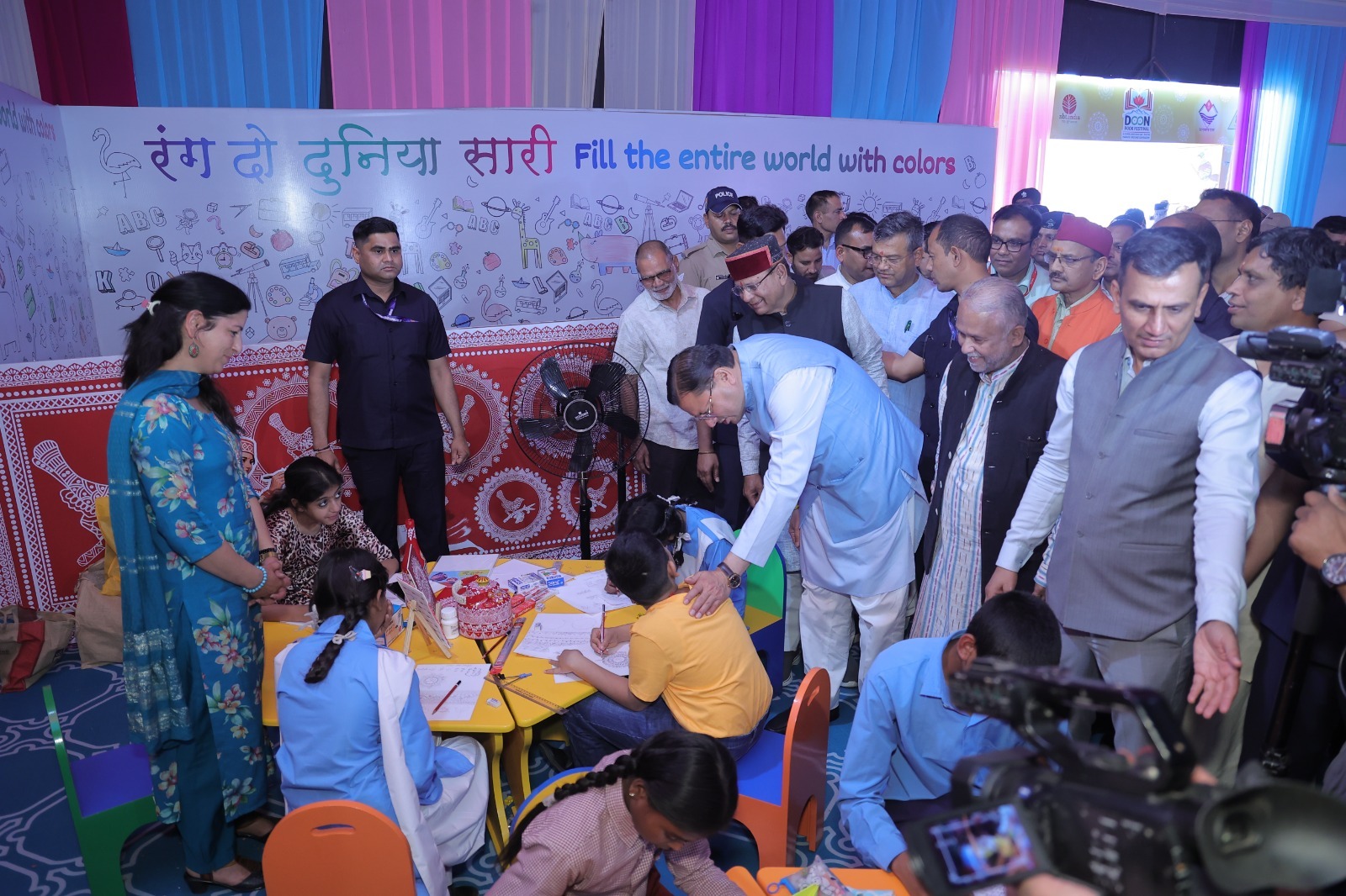 इससे पूर्व मुख्यमंत्री एवं अन्य अतिथिगणों द्वारा महोत्सव में स्थापित बाल मंडप का निरीक्षण किया गया। बाल मंडप में बच्चों हेतु स्थापित इंटरेक्टिव लर्निंग कॉर्नर का उन्होंने निरीक्षण किया। बाल मंडप में पेंटिंग गतिविधि में प्रतिभाग करने वाले बच्चों से मुख्य अतिथि द्वारा बातचीत की गयी। उत्कृष्ट कला प्रदर्शन करने वाले बच्चों को मुख्यमंत्री पुष्कर सिंह धामी ने उपहार स्वरूप पुस्तकें ‘एग्जाम वॉरियर्स एवं चंद्रयान’ भेंट किया।