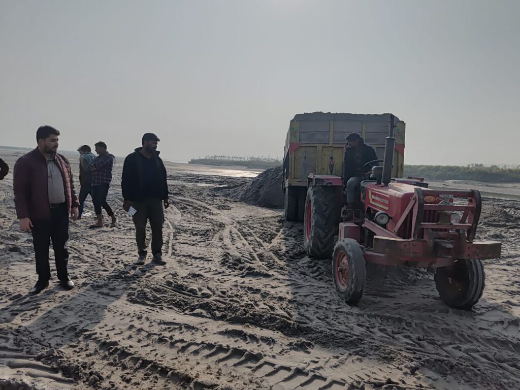 औचक निरीक्षण के दौरान मौके पर अवैध खनन करते हुए 07 ट्रेक्टर ट्राली पकड़ी गयी, जिन्हें ग्रामीणों की मदद से पुलिस चौकी भिक्कमपुर के सुपुर्द किया गया है।