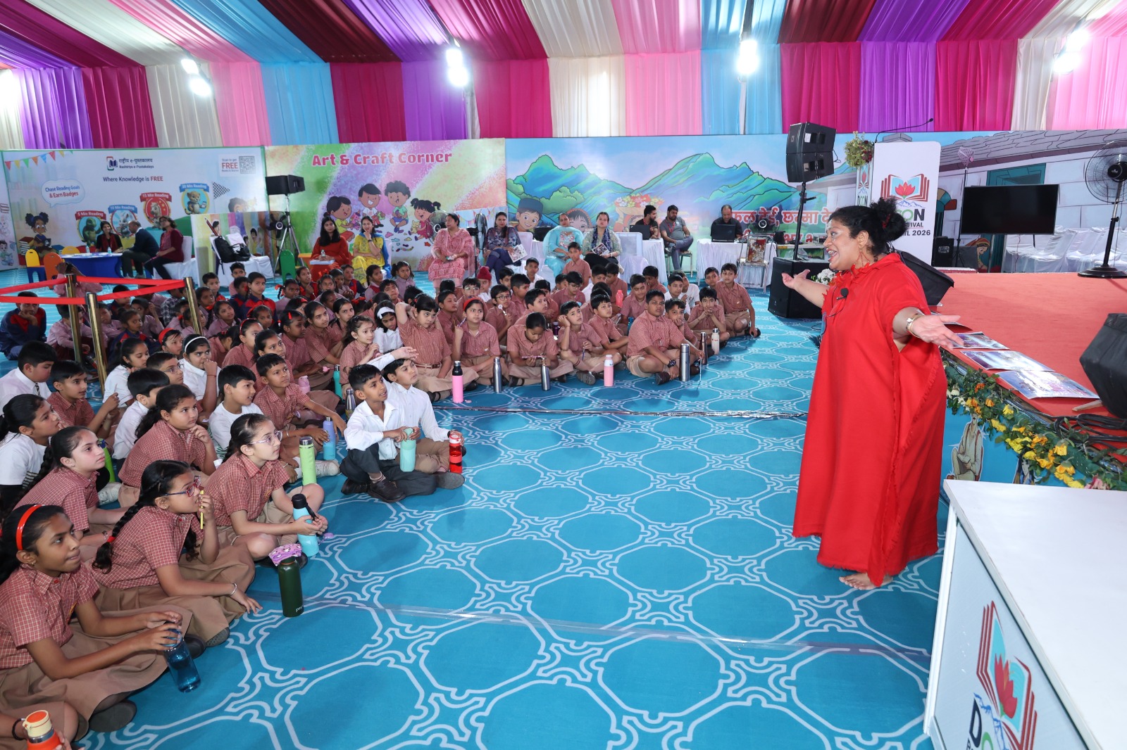 ‘चिल्ड्रन्स कॉर्नर’ में आज बच्चों के कार्यक्रम भारी उत्साह और रचनात्मक ऊर्जा के साथ संपन्न हुए। लगभग 700 छात्रों ने कहानीकार सोमाली रावत द्वारा सुनाई गई कोरियाई लोककथा का आनंद लिया, जिसने उन्हें कल्पना की एक नई दुनिया की सैर कराई। इसके बाद नेस्ट मैन ऑफ इंडिया’ राकेश खत्री ने बच्चों को पक्षियों के लिए घाँसले बनाना सिखाकर पर्यावरण संरक्षण का संदेश दिया, जबकि ज्योति जोशी के ‘ऐपण आर्ट वर्कशॉप’ में बच्चों ने उत्तराखंड की पारंपरिक लोक कला के सुंदर रंग उकेरे। ‘कलर मी कॉर्नर’ और ‘आर्ट एंड क्राफ्ट’ जैसी गतिविधियों से भरा यह दिन बच्चों के लिए सीखने और मनोरंजन का एक यादगार अनुभव रहा।