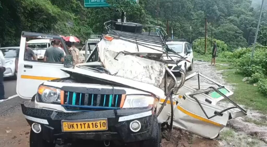 दुगड्डा रोड पर दर्दनाक हादसा, चलती टैक्सी पर गिरा पत्थर, दो की मौत, छह घायल; देखें वीडियो
