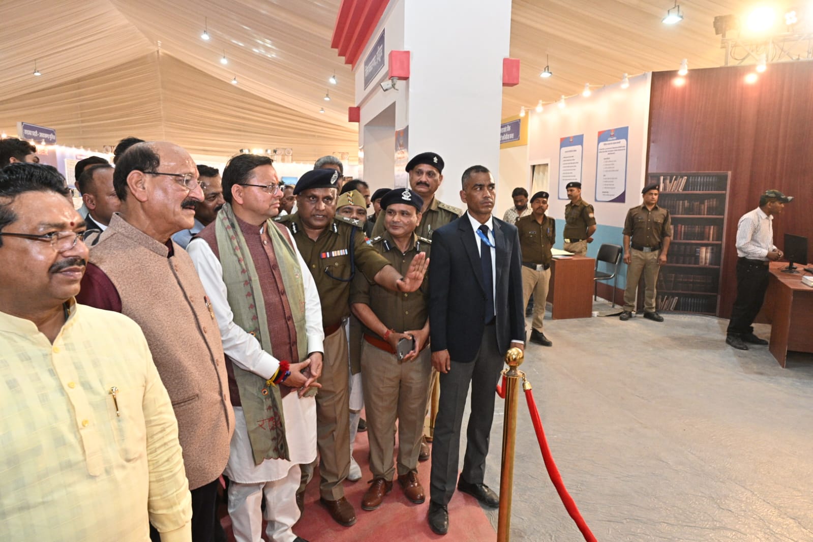 मुख्यमंत्री श्री पुष्कर सिंह धामी ने बैरागी कैम्प पहुँचकर प्रस्तावित कार्यक्रमों की तैयारियों का स्थलीय निरीक्षण किया। इस दौरान उन्होंने जनसभा स्थल, मंच, प्रदर्शनी क्षेत्र, पार्किंग व्यवस्था, सुरक्षा प्रबंधन, यातायात व्यवस्था, पेयजल, विद्युत आपूर्ति तथा अन्य मूलभूत सुविधाओं का विस्तृत अवलोकन किया।